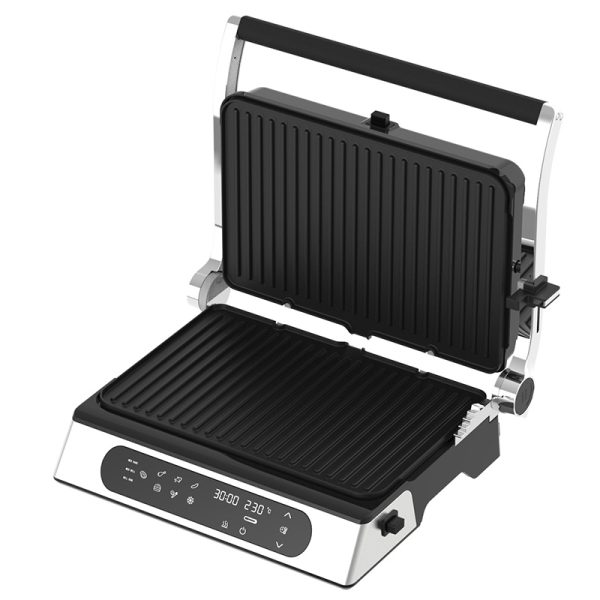 The GR-233C Digital Contact Grill combines power and convenience, featuring a 6-slice detachable plate system for easy cleaning and versatile cooking. With an output of 1800-2200W, this grill delivers efficient heating for fast, even cooking. The digital display and preset manual with one-click operation make it user-friendly, allowing precise control over temperature and time.